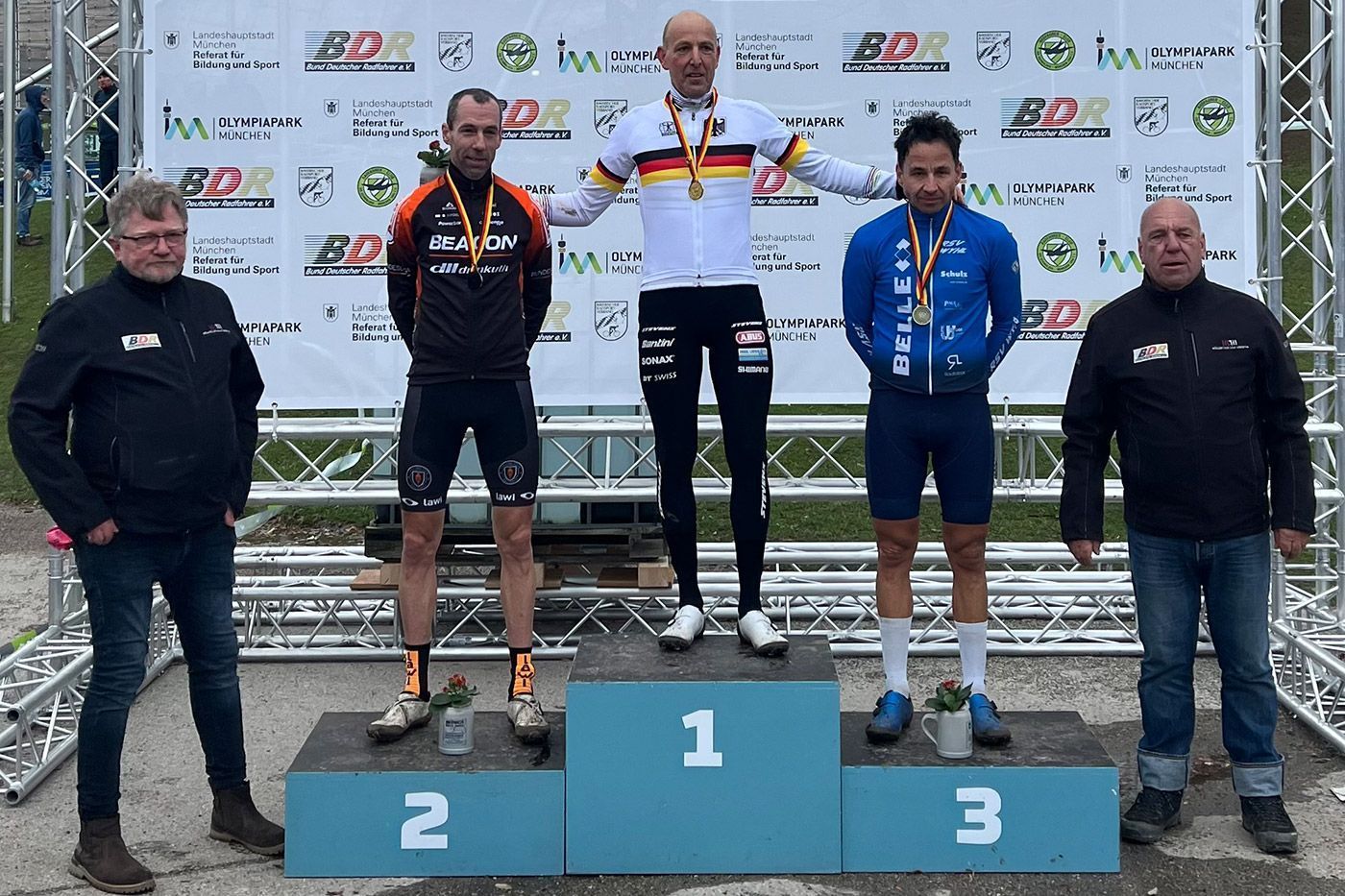 Mitte Januar, München Olympia-Park - das Team der RC Schwalben hat eine anspruchsvolle Strecke für die Deutsche Meisterschaft im Cyclocross auf die Beine gestellt. Petrus meint es leider nicht gut mit uns und macht die Herausforderung umso größer: auf rutschigen Schräghängen schliddert so manch einer gen Olympiasee, die Hürden kurz vorm Berg springt man idealerweise, was bei der Höhe gar nicht so leicht ist, viele steile Anstiege tun ihr übriges. Starten ist bekannermaßen nicht meine Stärke, also arbeitete ich mich sukzessive an die Spitze und konnte final das Rennen für mich entscheiden.