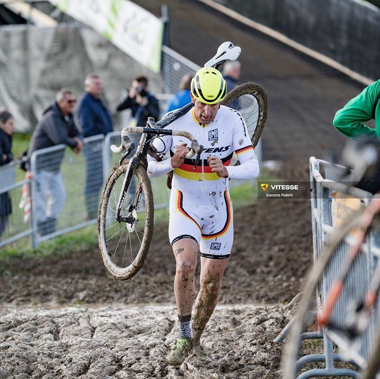 Verrückte Vorbereitung, verrückte Anreise, verrückter Renntag. Der Weg zum dritten WM-Titel war steinig. Und auch wenn alle immer sagen "Das Ding hast Du doch im Sack" ist das nicht selbstverständlich. Der Erfolg kommt einfach nicht von alleine. Versprechen muss man einhalten: am 3. Oktober habe ich bei der Siegesfeier der Deutschen Meisterschaft in Kehl vor dem versammelten Stevens Racing Team und der Geschäftsführung gesagt, dass ich versuchen werde in 2 Monaten das Deutsche gegen das Weltmeister Trikot zu tauschen. Da konnte ich noch nicht ahnen, dass die Corona Pandemie eine größere Herausforderung werden könnte als Training, Betreuer-Planung und Vorbereitungsrennen. Regeländerung und Harakiri-Anreise 4 Tage vor der geplanten Abreise wurde aber alles extrem kompliziert durch neue Corona Einreise Verordnungen des Vereinigten Königreichs. Neben Regeln, Tests & Co. hatten wir natürlich auch die Gesundheit der Betreuer und uns im Hinterkopf. Aber Cindy und ich hatten für dieses eine Rennen hin trainiert und uns entschieden früher und auch alleine anzureisen. Zum Glück zeigte sich auch der Arbeitgeber flexibel und die Arbeitskollegen die eingesprungen sind - Danke an das gesamte Radsport von Hacht Team! Wir hatten vor Ort großartige Unterstützung von Sportsfreund Darren Atkins, der für uns Betreuer im Depot organisierte und auch sonst mit Rat & Tat zur Seite stand. Umso schöner, dass wir uns auch final das Podium teilen konnten! Dafür vielen Dank Darren. Also Dienstag 21:00 auf die Fähre nach 7:00 in der Schlafkabine Ankunft dann zum Express PCR Test 2h nach Cambridge gejuckelt, schlappe 70 € pro Person gezahlt, abwarten und zack wieder frei aus der Quarantäne. Streckencheck und Los(un)glück Dann das erste Mal auf die Strecke: bei Trockenheit ein schneller, flacher Kurs mit einer langer Startgerade, Wiese, einigen Hügeln + Treppe und einer Trailpassage im Wald. Wie das im Cross so ist, war die Strecke bei jedem Training anders. Am ersten Tag noch trocken, dann sukzessive immer feuchter bis hin zum richtigen Matsch nach einer Nacht Regen vor unseren Rennen. Mir und Cindy war klar, dass uns das in die Karten spielt. Bei einer Master WM wird die Startaufstellung ein Tag vor dem Rennen gelost. Cindy hatte Glück: Start Nr. 5 und in der jüngsten Altersklasse damit erste Reihe. Bei mir war es nicht ganz so vorteilhaft: Platz Nr. 51. Bei 104 Startern mehr oder weniger die Goldene Mitte. Bei den Masters ist es auch immer ein wenig eine Black Box im Starterfeld. Einige Namen kennt man, aber gerade unter den Briten fehlte mir das Bild der Titel-Favoriten. Der irische Meister startete von Platz 1, Darren Atkins von 65, Nick Craig als britischer Meister von 95. Darren ist mehrfacher Medaillen-Gewinner bei der Masters-WM, Nick war früher MTB-Profi und auch bereits Weltmeister der Masters. Darren berichtete von noch einigen anderen Fahrern, die auch bereits Titel geholt hätten, aber letztlich zeigt sich die aktuelle Form & der Vergleich immer erst im Rennen. Cindy's Rennen - was ist denn da los? Am Renntag dann 8 Uhr Streckencheck bevor es um 9 Uhr für Cindy an den Start ging. Gemeinsam mit der Perle nochmal die Strecke abgefahren und die neue Linie bei den gegebenen Verhältnissen gezeigt. Die Hügelpassage war durch den tiefen Matsch mittlerweile echt tricky, die engen Kurven zwischen den Bäumen im Wald ebenso. Für mich war klar: ich muss nach meinem Start so schnell wie möglich in die Spitze kommen, um bei diesen Streckenabschnitten nicht den Anschluss an die vermeintliche Spitze zu verlieren. Cindys Start lief ganz gut: nach der langen Gerade auf der Straße fuhr sie als Dritte in die erste Kurve auf der Wiese und lieferte sich einen Vierkampf mit drei anderen Damen. Da ich mich auch warm fahren (und warm halten) musste, hatten wir Rolle und Zelt quasi direkt an der Strecke aufgebaut. Runde um Runde das gleiche Spiel: runter von der Rolle - Frau angefeuert, Family & Friends mit aktuellem Rennverlauf versorgt und wieder rauf auf die Rolle. Nach der dritten von sechs Runden kam Cindy als zweite Frau vorbei - die Dritte aus dem Trek Cycling Team mit deutlichem Abstand. Nanu - was war da los? Madame macht es ja spannend heute. Nach Runde 5 konnte ich mich nicht mehr auf der Rolle halten und raste zur Trailpassage. Wenn sie dort safe raus kommt, ist das Podium sicher! Und da kam sie - nochmal mehr Vorsprung. Vorbei am jubelnden Depot rechts von der Strecke, ich auf der Wiese mit Vollgas und Videoaufnahme links von der Strecke. Was ich bis zum Ende meines Rennens nicht wusste: die erste Dame war aus einer anderen Altersklasse. Somit hatte ich den Weg der neuen Weltmeisterin begleitet. Mein Rennen: Vollgas, Defekt & Sieg Zum Ziel schaffte ich es nicht mehr, denn mein Start stand kurz bevor und wie ich feststellte hatte ich mir mit meiner Aktion einen Platten eingefahren. Also nochmal zum Auto, Reifen wechseln, wieder zurück zum Start. Was für eine Aufregung so kurz bevor es um die Wurst gehen sollte. Der Startschuss fiel und ich gab Vollgas. Quer durchs Feld, jede noch so kleine Lücke war meine, geschätzt ging ich als Zehnter ins Gelände. Ich nahm die erste Kurve möglichst eng, da vermutlich viele Fahrer im großen Bogen fahren würden. Heikles Manöver auf dem rutschigen Untergrund, aber der Plan ging auf. Ich konnte nochmal einige Plätze gut machen, ließ den irischen Meister hinter mir und fuhr nach 1,5km als Erster in die Trails. Diese erste Runde hatte mir schon so viel abverlangt, dass ich erst einmal Luft holen musste. In diesem Tempo hätte ich das Rennen unmöglich weiter fahren können, erst recht keine 50min.. Jetzt bloß keine Fahrfehler machen, Vorsprung halten oder ausbauen dachte ich mir. Dann Defekt in Runde 5: die Pedale hatte sich gelöst und eierte bereits. Halbe Runde quasi mit einem Bein gefahren, dann ins Depot und meine Ersatzbetreuer finden. Sollte kein Problem sein - die haben ja Neonwesten an, sollte fix gehen. Und dann kommt man da im Depo